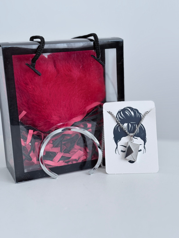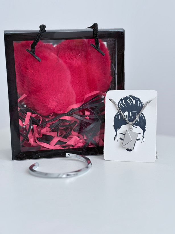 پک ولنتاین شماره7:شامل باکس طلقی پینترسی و پوشال قرمز و مشکی و جاکلیدی قلبی