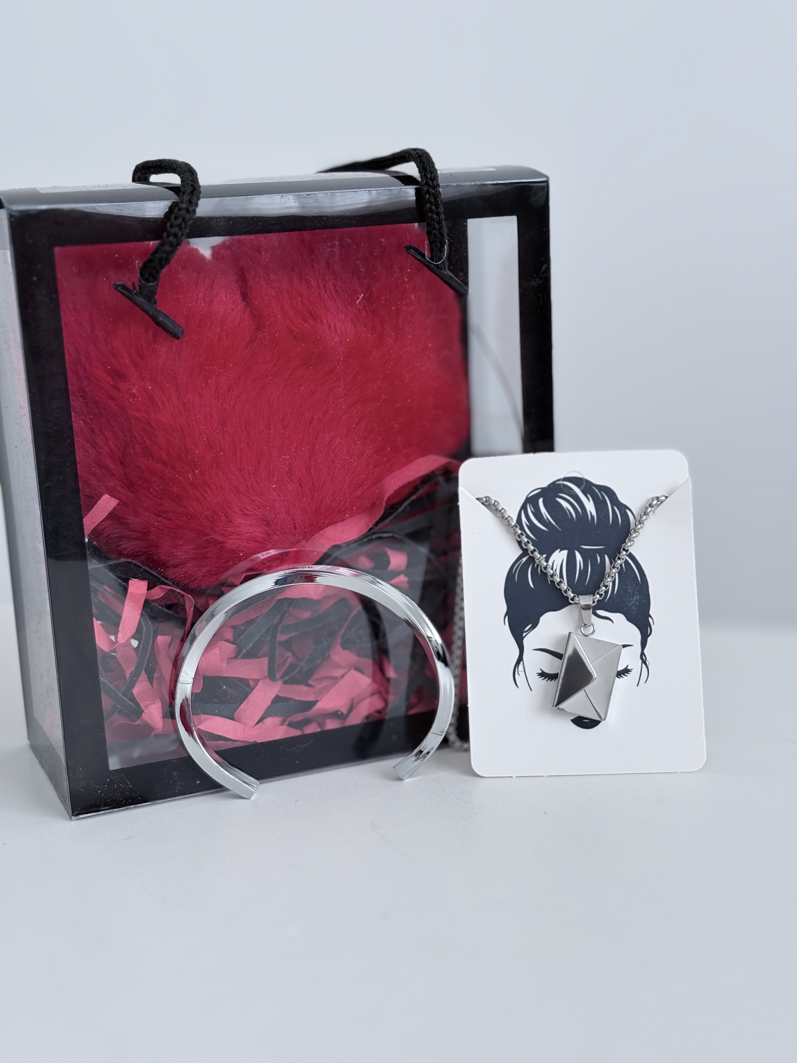 پک ولنتاین شماره7:شامل باکس طلقی پینترسی و پوشال قرمز و مشکی و جاکلیدی قلبی